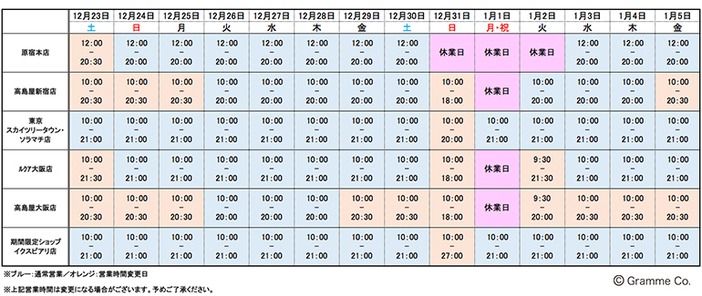 休業日:2017年12月30日(土)~2018年1月2日(火)