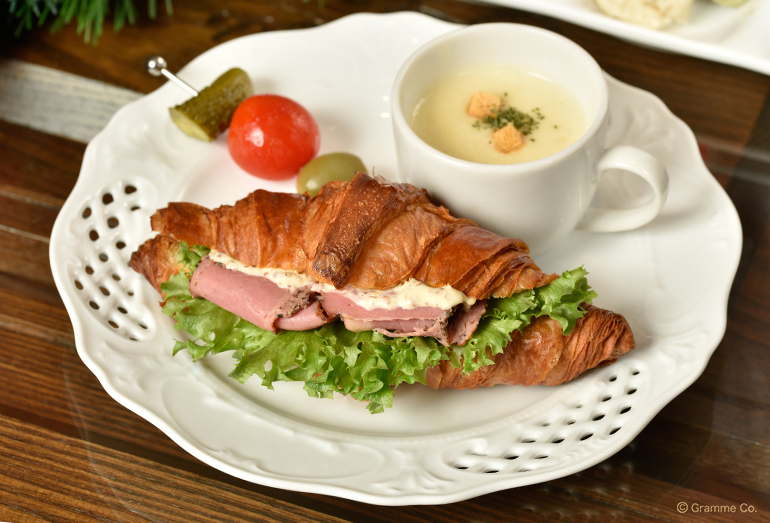 香ばしく焼き上げたサクサクのクロワッサンサンドに、