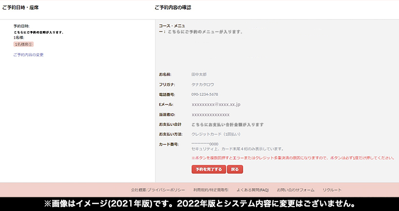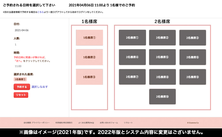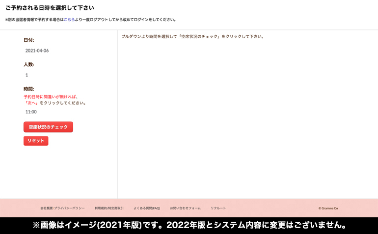 ※下記にてご紹介している「ご予約ページ」のデザインは若干変更になる場合がございます。