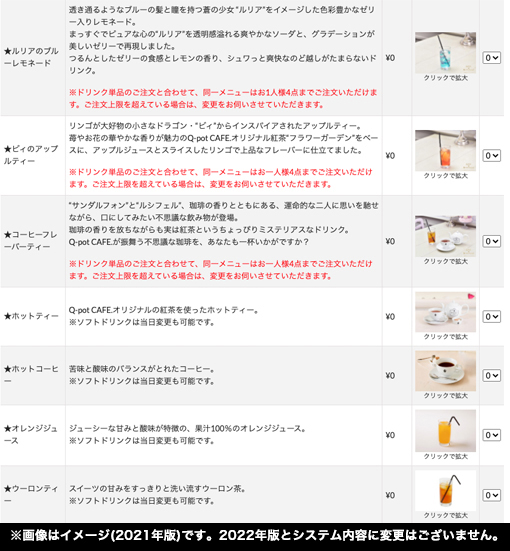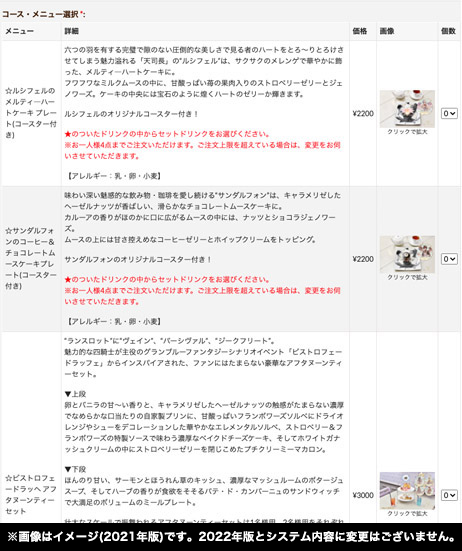 ☆印のついたメニューと、★印のドリンクが同じ数選択されている場合のみご予約が完了します。