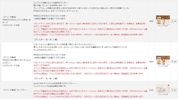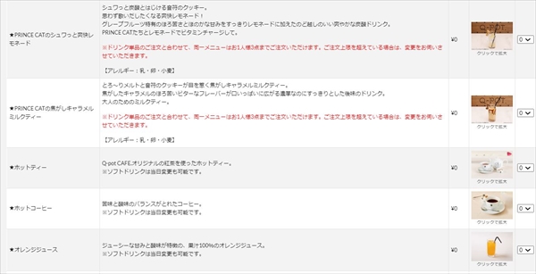 例えば「★PRINCE CATのシュワっと爽快レモネードx2点、【ドリンク単品】PRINCE CATのシュワっと爽快レモネードx2点」をご注文された場合は、どれか1点を別の種類にご変更いただきます。
