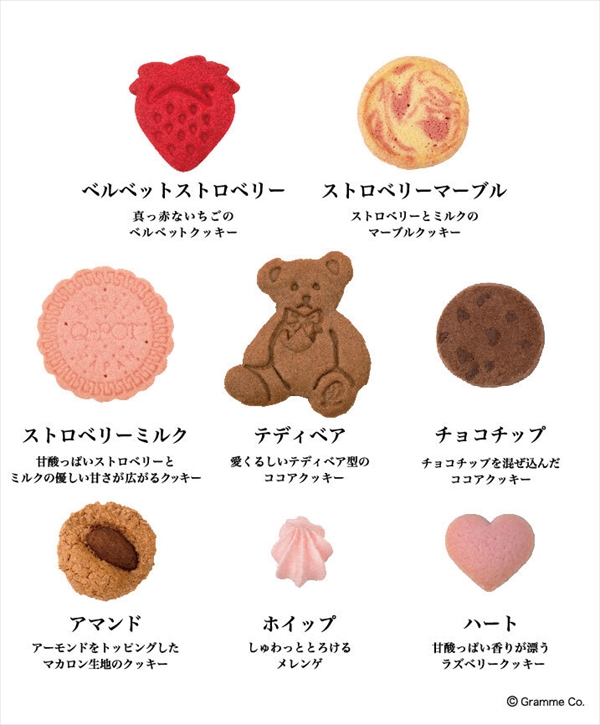 苺がたのしめるクッキーを贅沢に詰め合わせました。