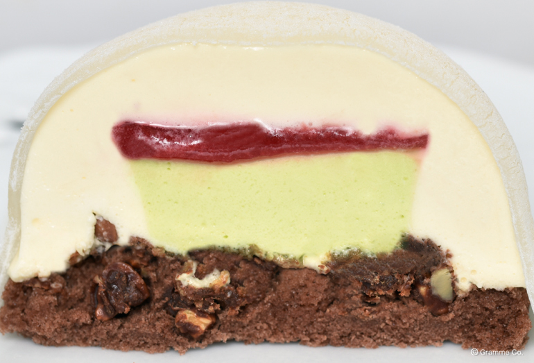 バニラムースの中からピスタチオ&ベリーのソースがとろ~り。