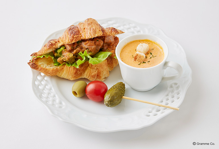 ローストビーフのデミサンドイッチ/トマトのクリームスープ/ピンチョス