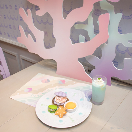淡く優しいパステルカラーの貝殻や珊瑚のフォトパネルが登場。