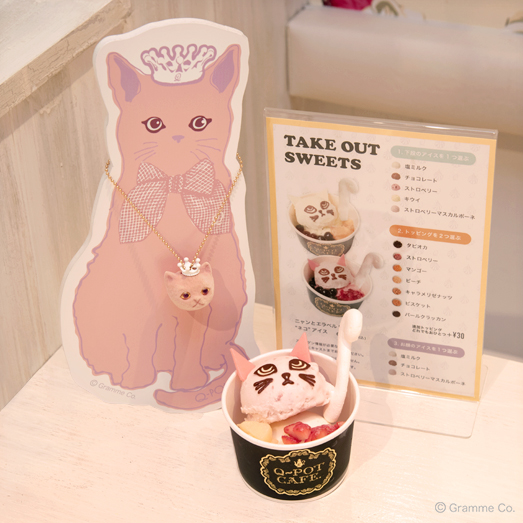 Q-pot.の“ネコ”アクセサリー着用で、1トッピング追加のサービスも。