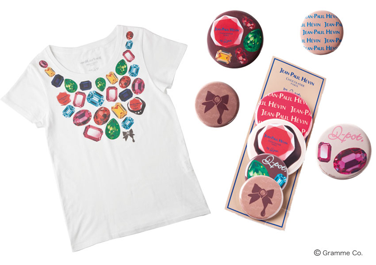 個性豊かな宝石を贅沢に散りばめたデザインTシャツ、4個セットのオリジナル缶バッヂ、とろ〜り・リボンオリジナルトートバッグを同時発売。