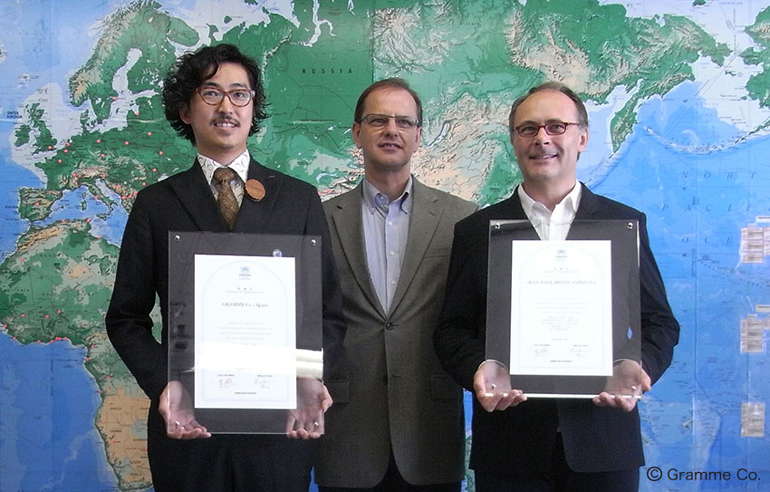 2010年9月14日「バングラデシュにおける女性自立支援プロジェクト」への寄付に対する感謝状贈呈式が、UNHCR駐日事務所にて行われました。ヨハン・セルスUNHCR駐日代表より、Q-pot.デザイナー・ワカマツ タダアキとショコラティエ・ジャン=ポール・エヴァン氏に贈呈されました。