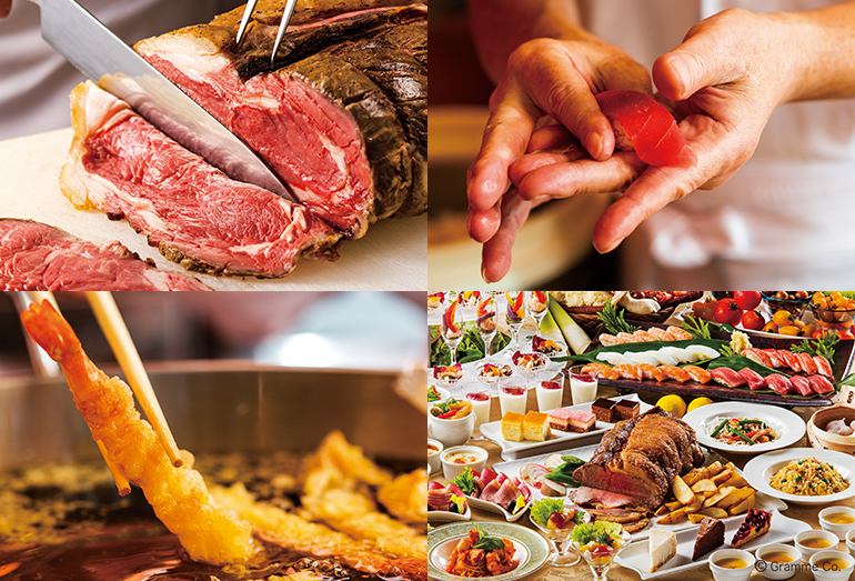 和洋中の様々なメニューに加え、目の前で仕上げる「ライブキッチン」にて、