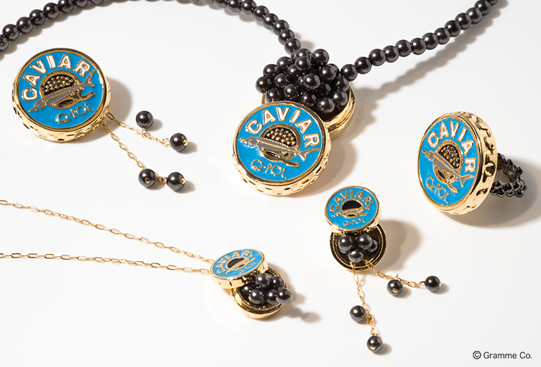 チェーン自体がキャビアという大振りのネックレスをはじめ、リングやブローチなど