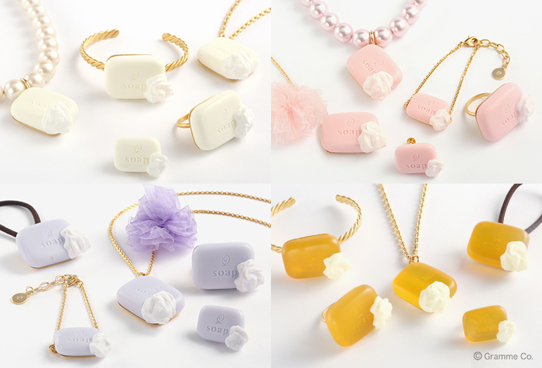 クリーミーな泡立ちで優しく包み込むネックレスなど、大人が楽しめるアートなデザインが目を惹きます。