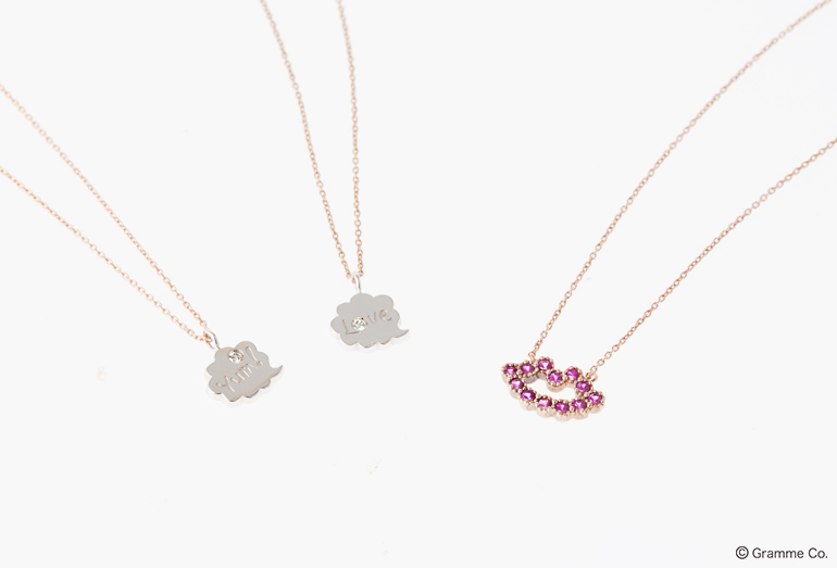 スピーチバルーン[yum!] ネックレス 29,000円+税(K10ホワイトゴールド/ダイアモンド)