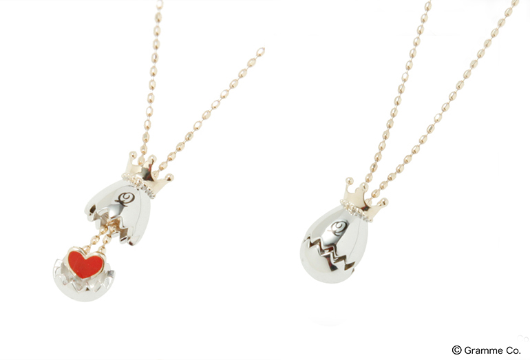 冠がついた卵型のペンダントトップを開くと、中にはハートが!