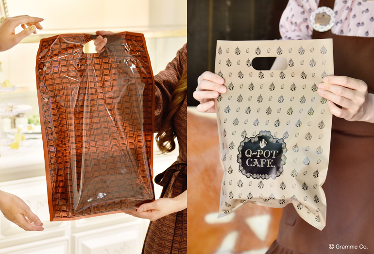 Q-pot.及びQ-pot CAFE.で商品ご購入時にお渡ししているビニールショッパーは、
