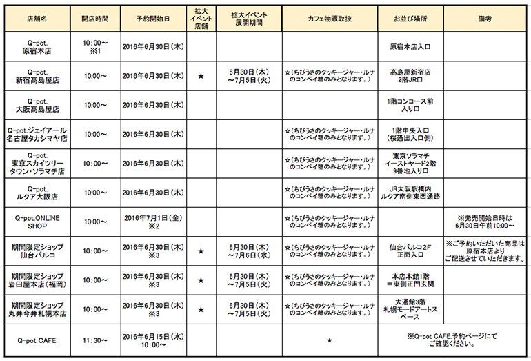 ※Q-pot CAFE.のご予約開始日は、イートイン席のご予約開始日となっております。Q-pot CAFE.で物販をご購入いただくためには、