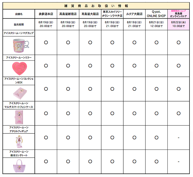●発売初日につきましては「Q-pot.×美少女戦士セーラームーン」アクセサリーは、お1人様1アイテムにつき各2点まで、「アイスクリームーン マグカップ」、「アイスクリームーン ミラー」、「アイスクリームーン コレクションボックス」、「アイスクリームーン マルチスマートフォンケース」は各5点までとさせていただきます。