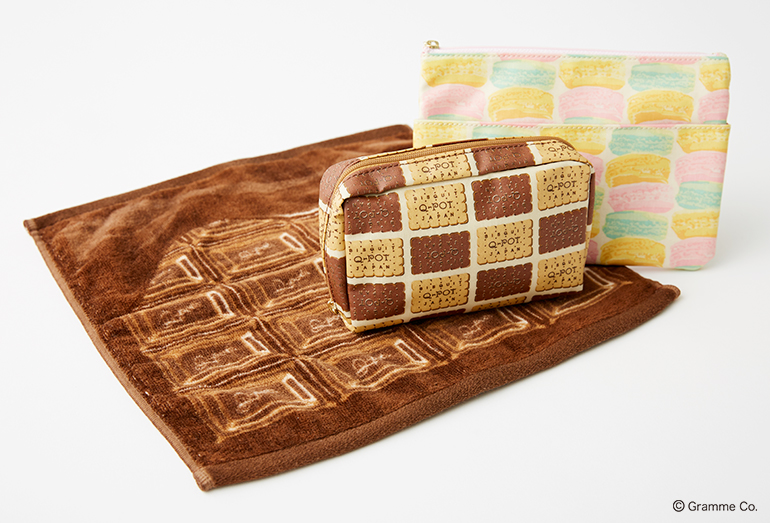 メルトチョコレートハンドタオル 1,100円+税 / ビスケットポーチ 3,200円+税