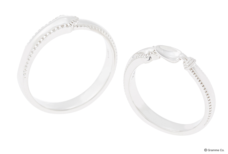 男性にはフォーク、女性にはスプーンをモチーフとしたシンプルながらも細かいディティールにこだわったデザイン。