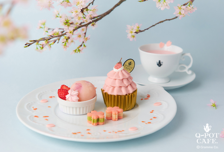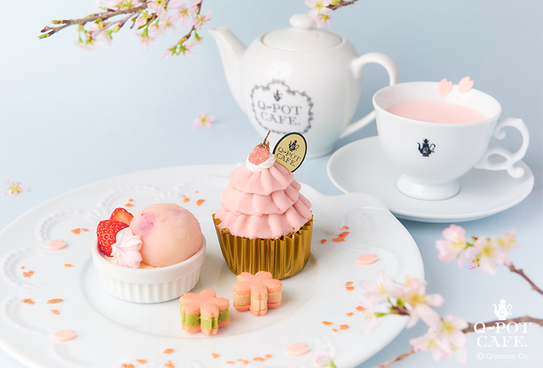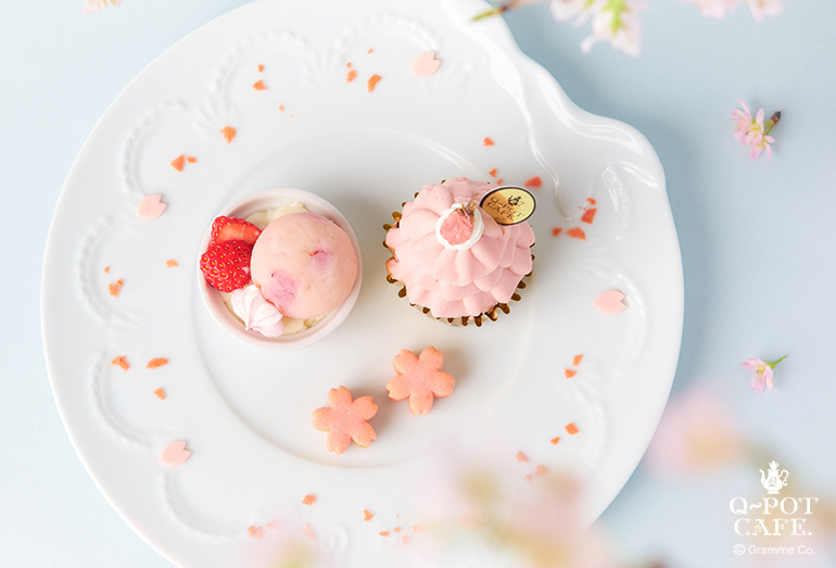 Q-pot CAFE.に美しい桜スイーツが咲き誇ります。