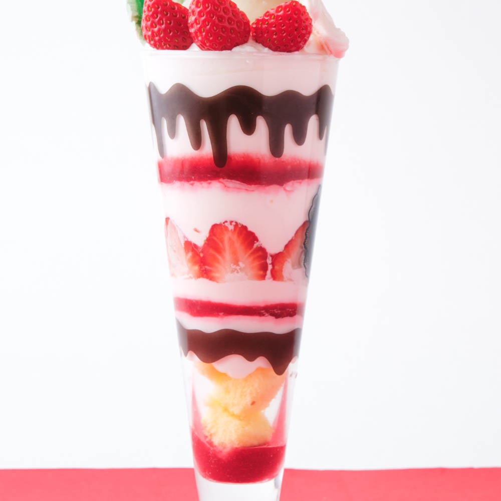 お正月に相応しい、縁起ものの紅白パフェが完成!