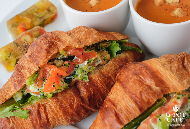 毎日店内で焼きあげるQ-pot CAFE.自慢のクロワッサンサンドは、