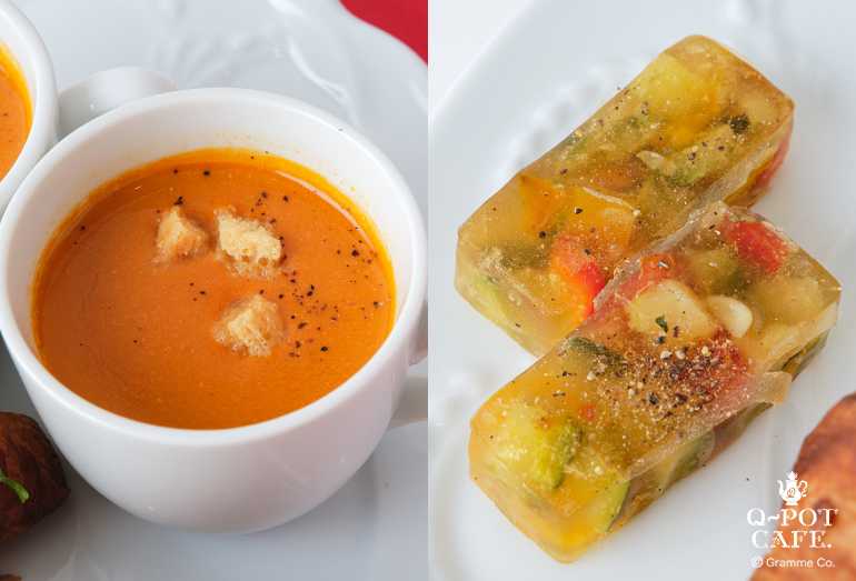 彩り豊かな野菜をぎゅっと閉じ込めたテリーヌを添えて。